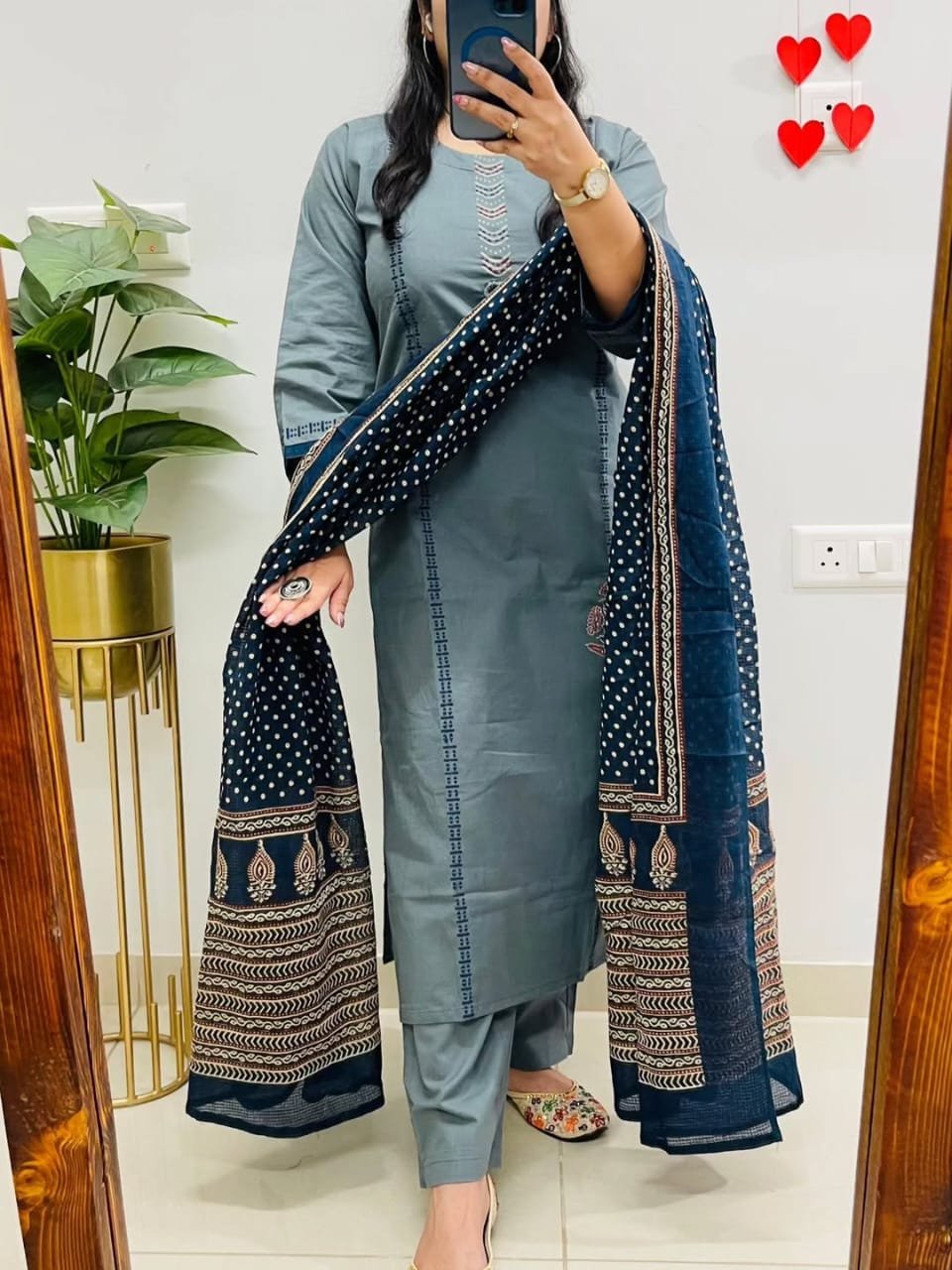Designer kurti pant dupatta set in *Premium fine cotton* with