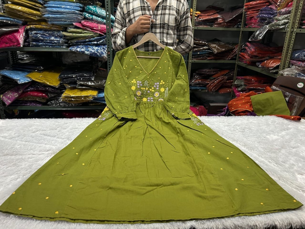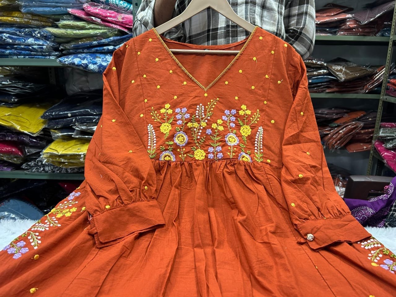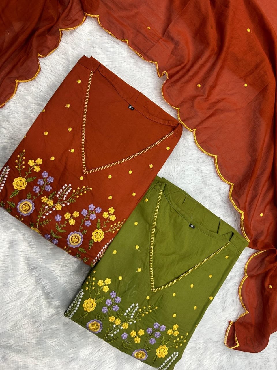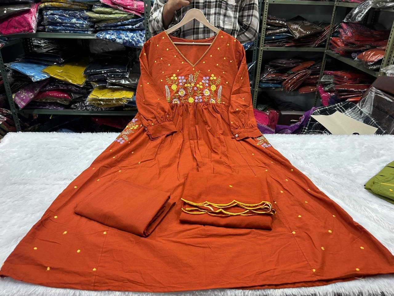 Go and ready this beautiful collection of Gorgeous anarkali kurta paired with matching pant made in primium pure cotton fabric with all over embroidery with cutwork duppta with pocket on kurta