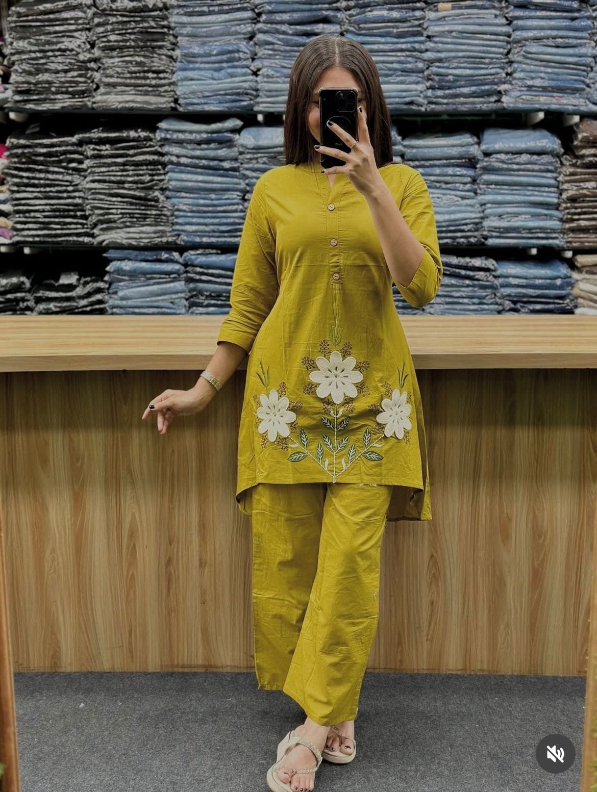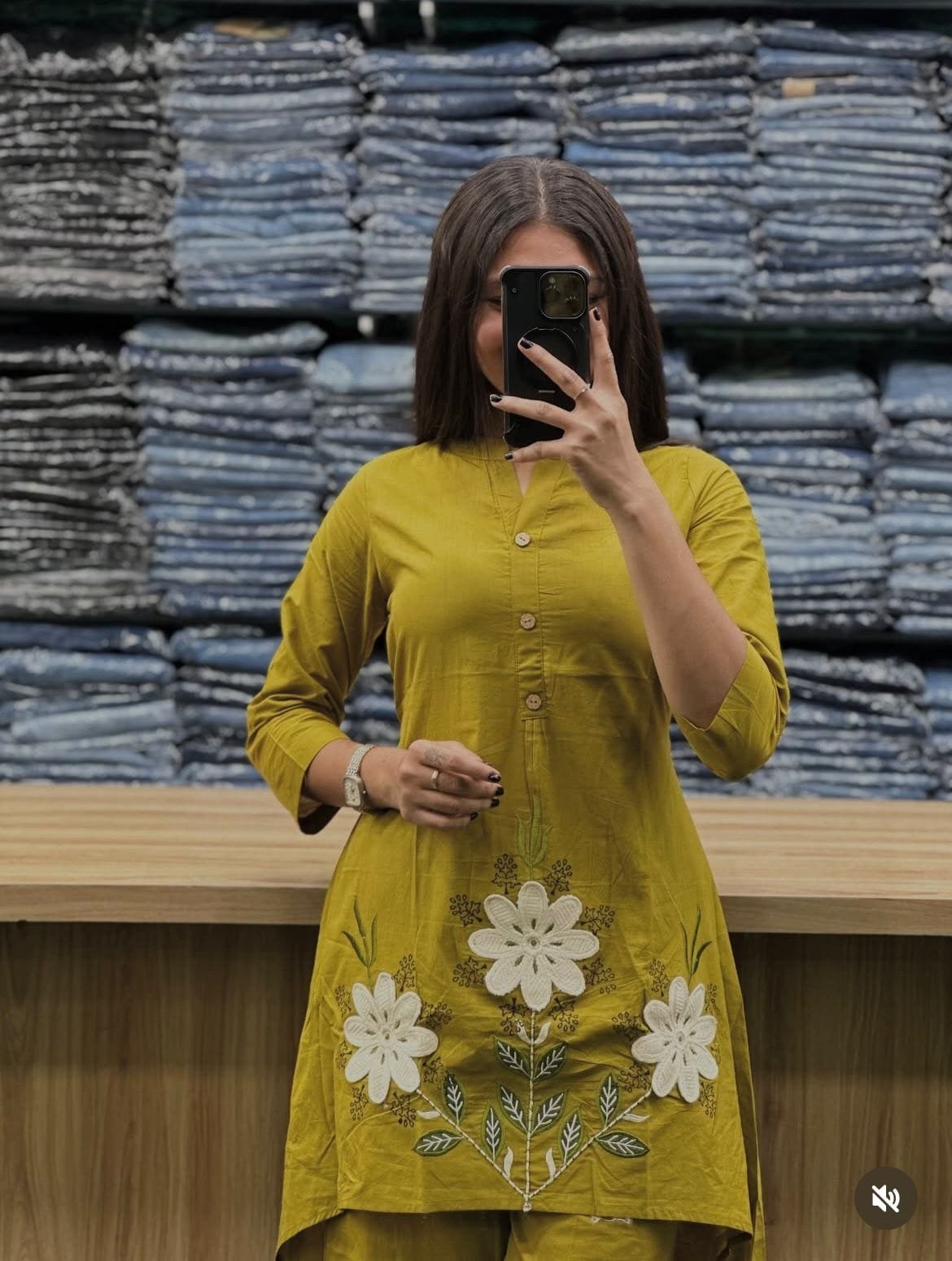 Upgrade your office wear wardrobe with this classy kurti pant with beautiful embroidery work detailing for all day comfort and trendy look🌸🌸